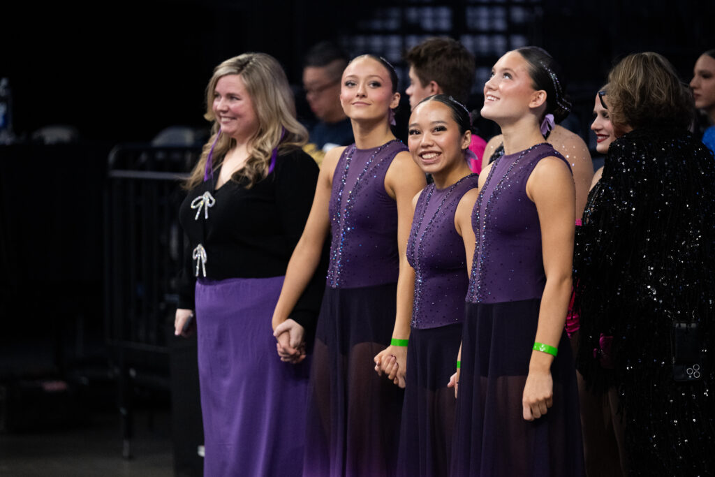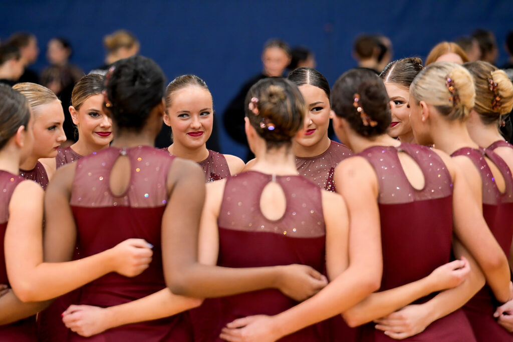 The teammates a dancer shares a competition floor with at sixteen often become the women she calls at thirty-six when life gets hard (ask me how I know!). Some of our favorite images are not the perfectly posed portraits, but the candid moments between teammates. The shaky hands and good luck hugs before the routine, the alternates losing their voice from screaming so hard, the tears after the final performance… those moments are the truest picture of what dance really is.